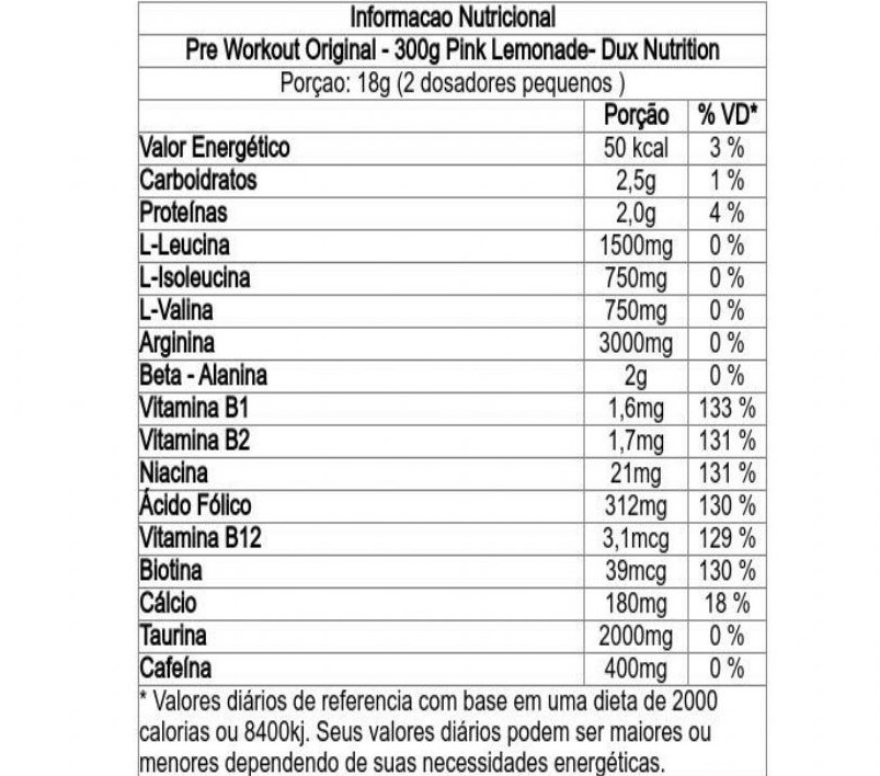 Com mais de 20 ingredientes multifuncionais e 73% de concentração ativa de constituintes, DUX Pre Workout Original é um produto completo, que garante suporte nutricional superior em treinos e competições.